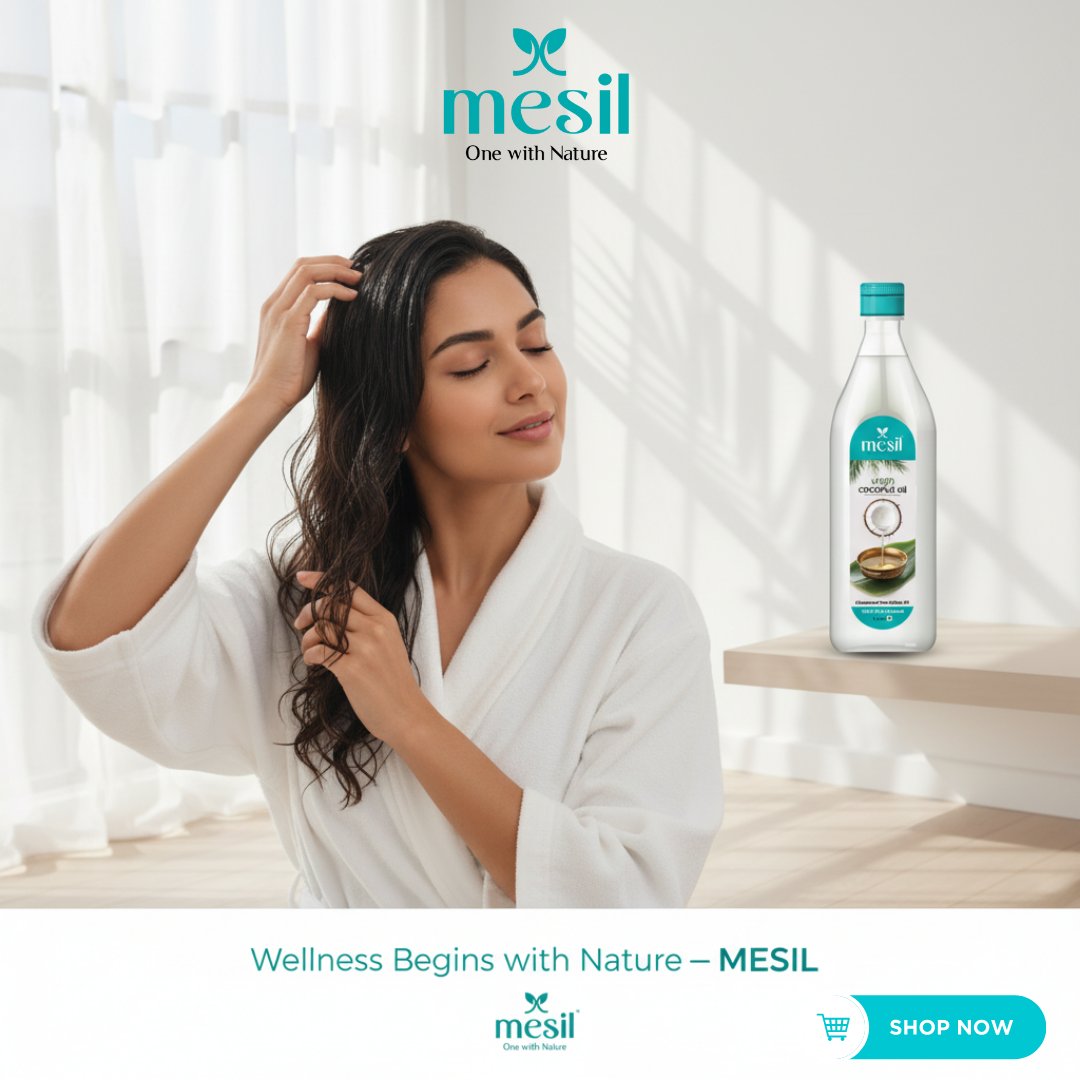 MESIL Virgin Coconut Oil is a premium quality oil that is extracted From fresh and mature coconuts Using the cold-pressed method. It is 100% pure and natural, with no bleaching, deodorizing, or refining