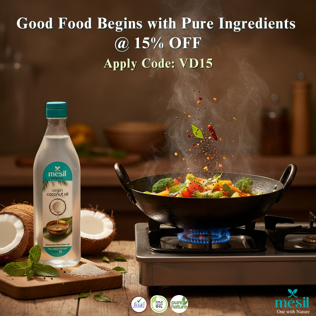 Coconut oil which is made using the natural process like MESIL helps to intact the nutrients and bind it well along the recipes. Instead of using cheaper oil i recommend to use MESIL coconut oil for better health and long term healthy lifestyle.